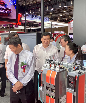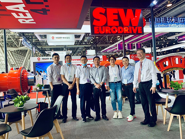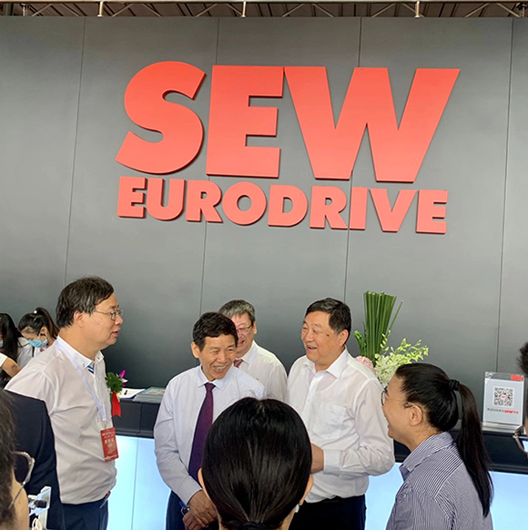 蕪湖錦華機(jī)械公司董事長(zhǎng)程華陪同中國水泥協(xié)會(huì)會(huì)長(zhǎng)海螺集團(tuán)董事長(zhǎng)高登榜書記、中國水泥協(xié)會(huì)原會(huì)長(zhǎng)喬龍德、中國水泥協(xié)會(huì)秘書長(zhǎng)孔祥忠等水泥行業(yè)大咖蒞臨SEW展臺(tái)視察指導(dǎo)。