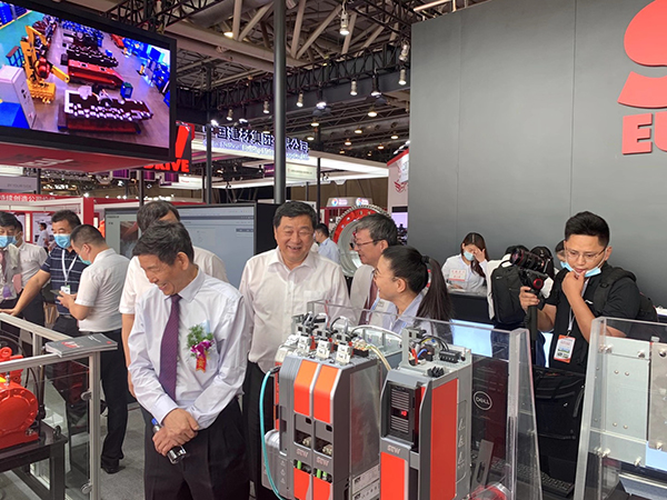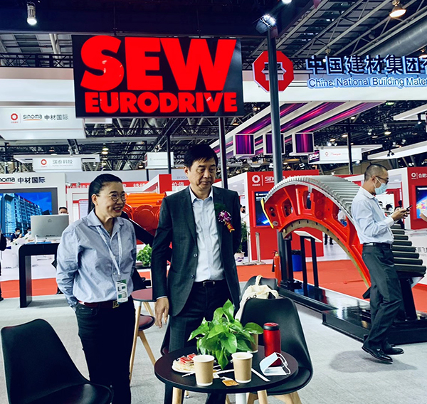 蕪湖錦華機(jī)械公司董事長(zhǎng)程華陪同中國水泥協(xié)會(huì)會(huì)長(zhǎng)海螺集團(tuán)董事長(zhǎng)高登榜書記、中國水泥協(xié)會(huì)原會(huì)長(zhǎng)喬龍德、中國水泥協(xié)會(huì)秘書長(zhǎng)孔祥忠等水泥行業(yè)大咖蒞臨SEW展臺(tái)視察指導(dǎo)。