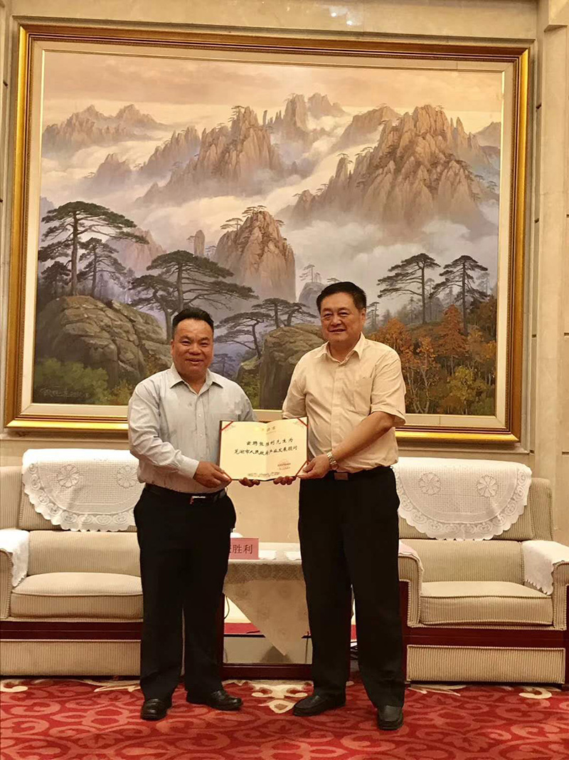 蕪湖市委副書記、市長賀懋燮熱烈歡迎張總一行的到訪考察,市政府秘書長湯德余、市發(fā)改委主任張東、市科技局局長楊少華,公司董事長程華、副總經(jīng)理程亞斌陪同考察。